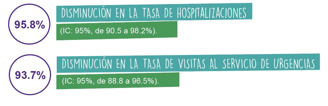Después de recibir la primera dosis, se observó una reducción en hospitalizaciones y visita a sala de urgencias por gastroenteritis -independientemente al tipo de serotipo- en un 95.5% (IC: 95%, de 76.4 a 99.9%).2